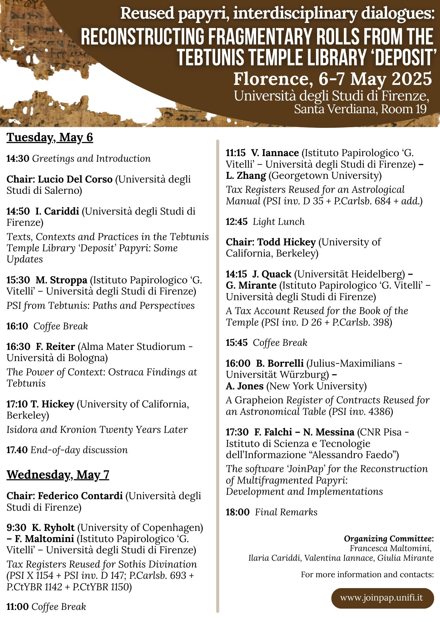 Pdf flyer and programme: Tebtunis conference Florence 6-7 May 25 - Flyer & programme